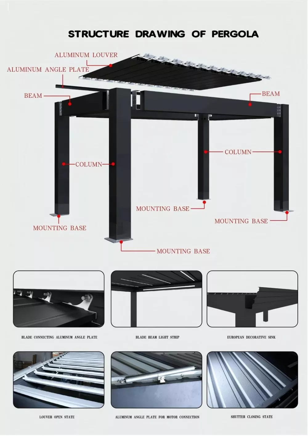 Pergola có động cơ có động cơ chủ yếu bao gồm các bộ phận sau: